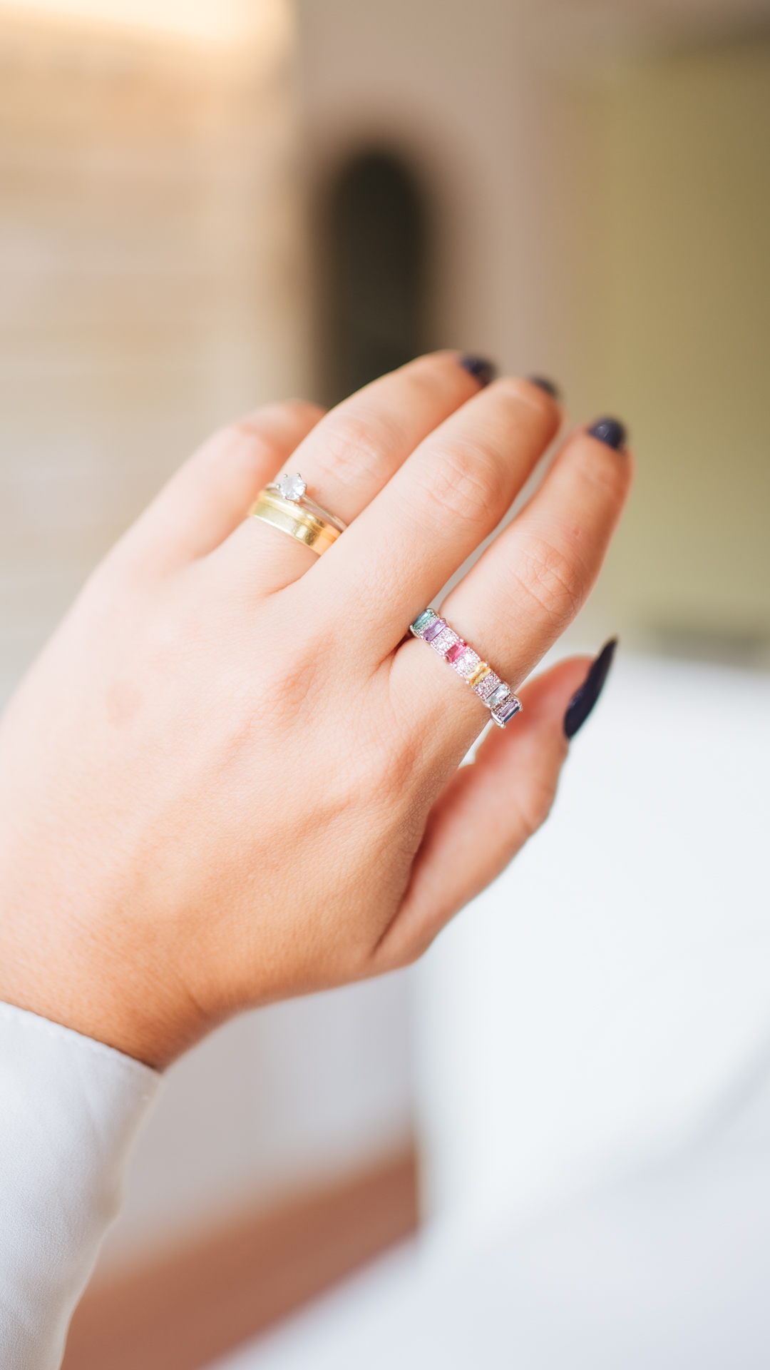 Anel banhado no Ródio Branco.