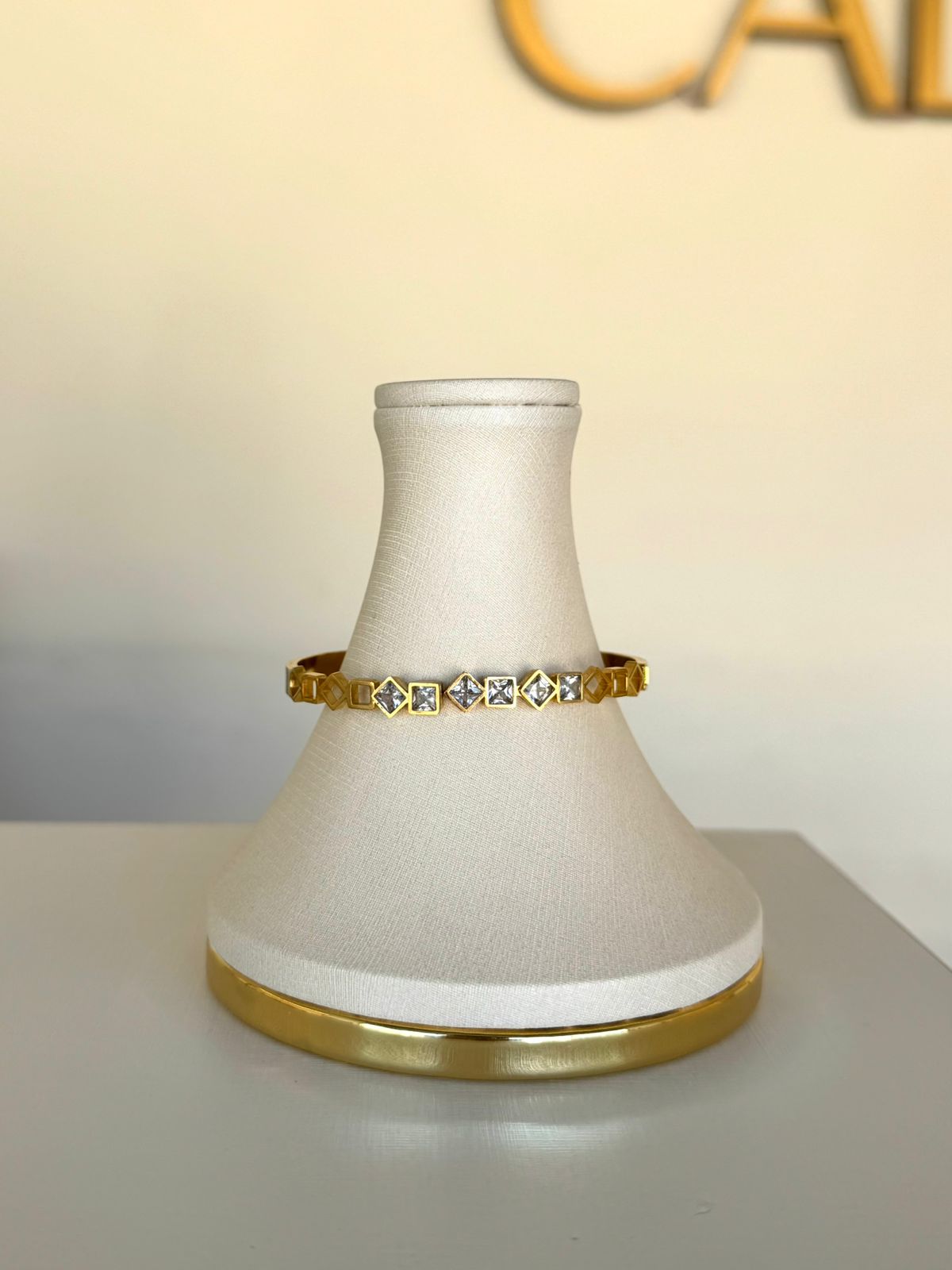 BRACELETE QUADRADOS NO AÇO DOURADO