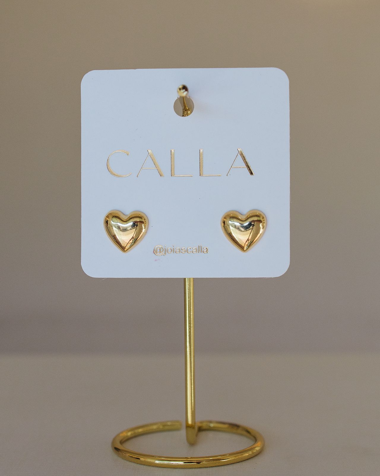 Brinco de coração com tarraxa banhado a Ouro 18K.