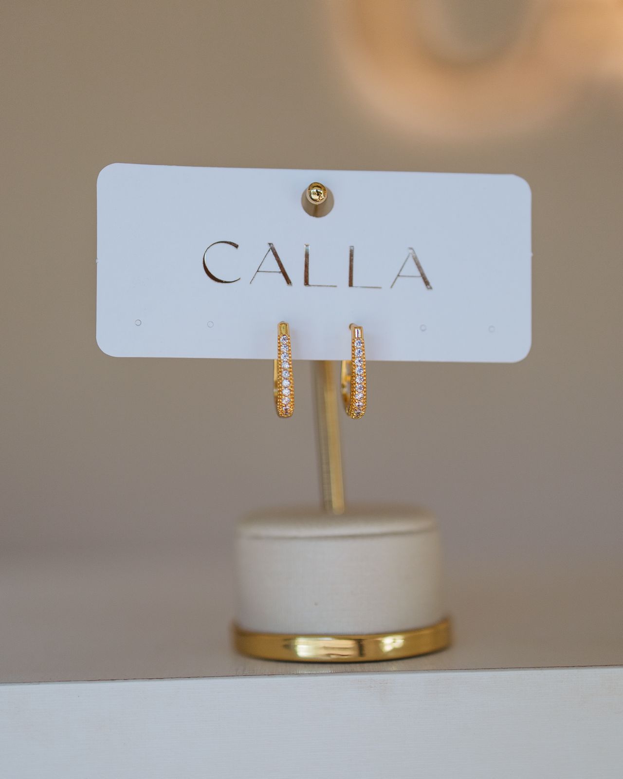 Brinco de argola cravejada click banhado a Ouro 18K.