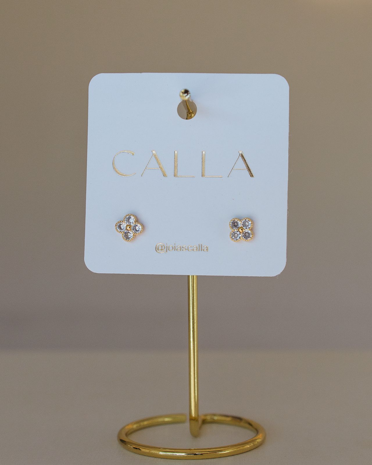 Brinco trevinho de tarraxa banhado no Ouro 18K.