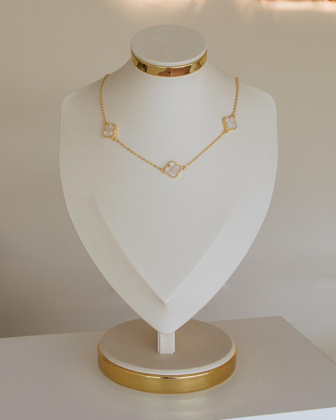 COLAR TREVO TRIPLO CADEADINHO MADREPÉROLA NO OURO